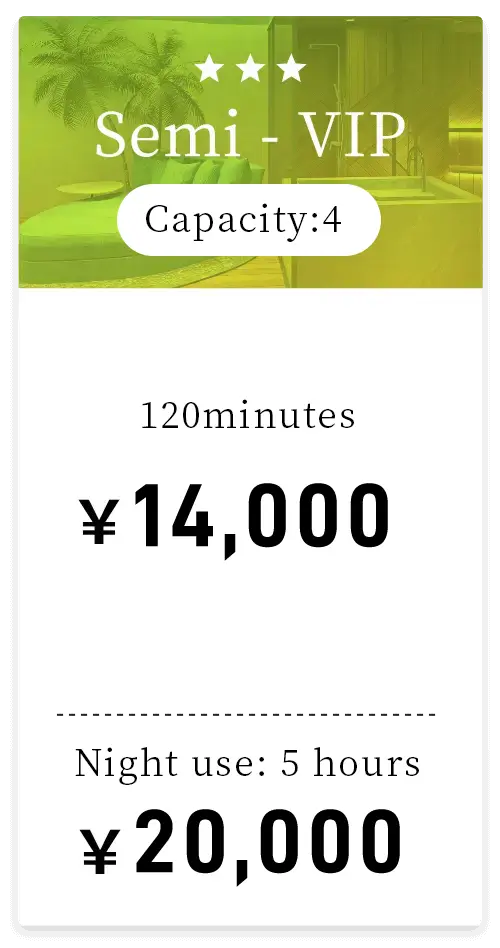 Capacity: 2 guests90min ¥8,000~ / 120min ¥10,000~