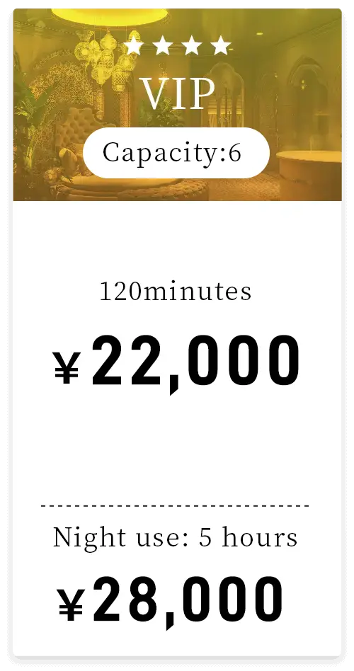 Capacity: 6 guests120min ¥24,000