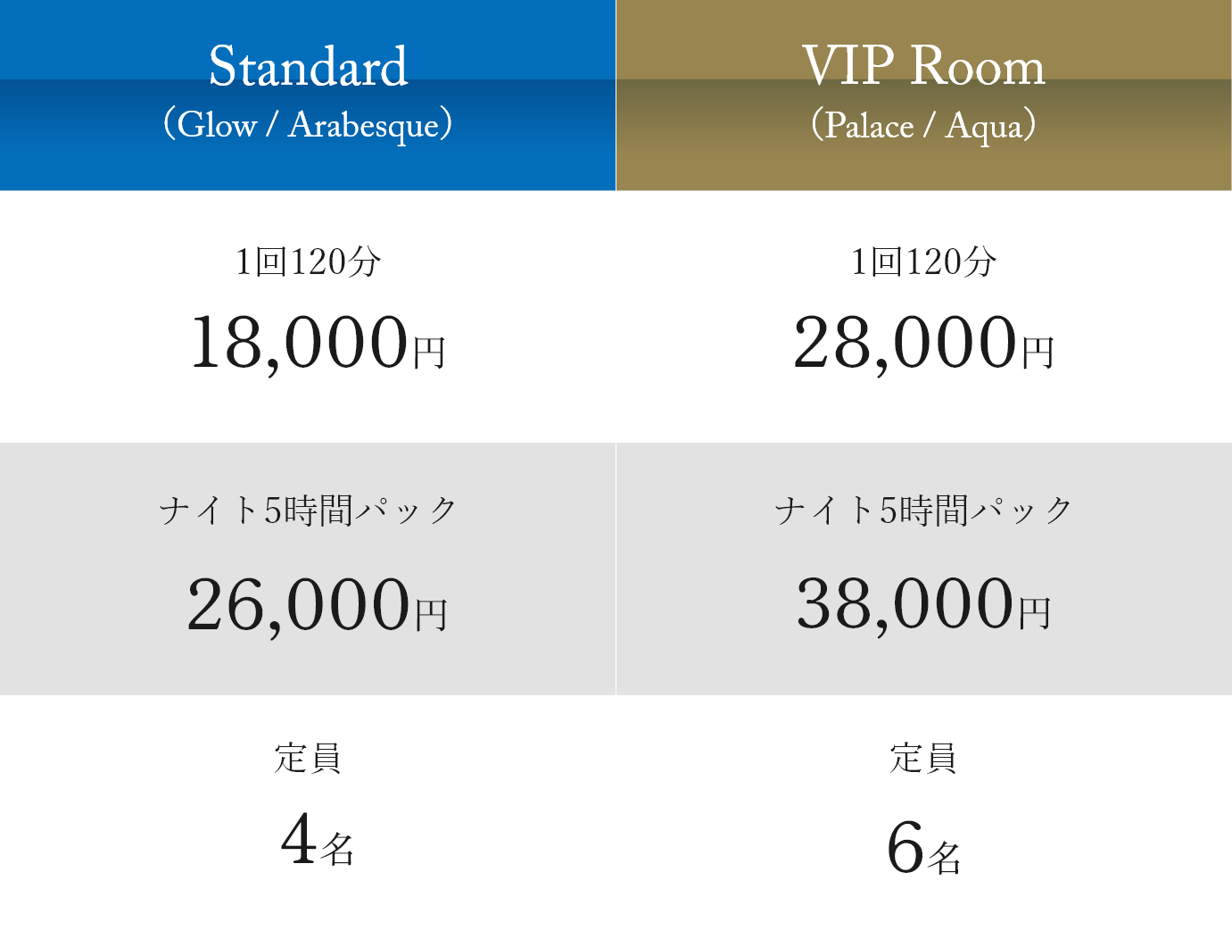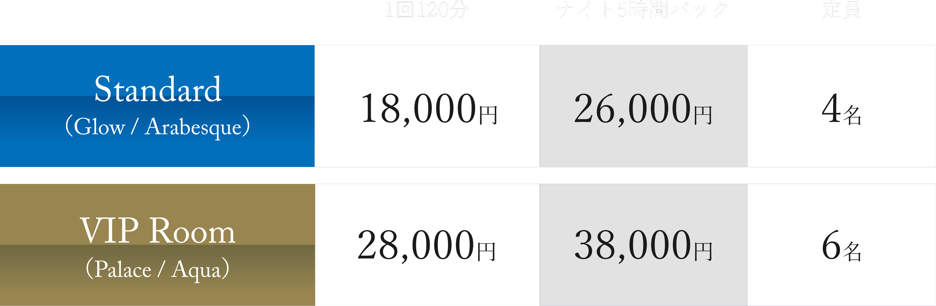 ※お部屋あたりの料金となり、定員人数までは利用人数に関わらず同料金です。